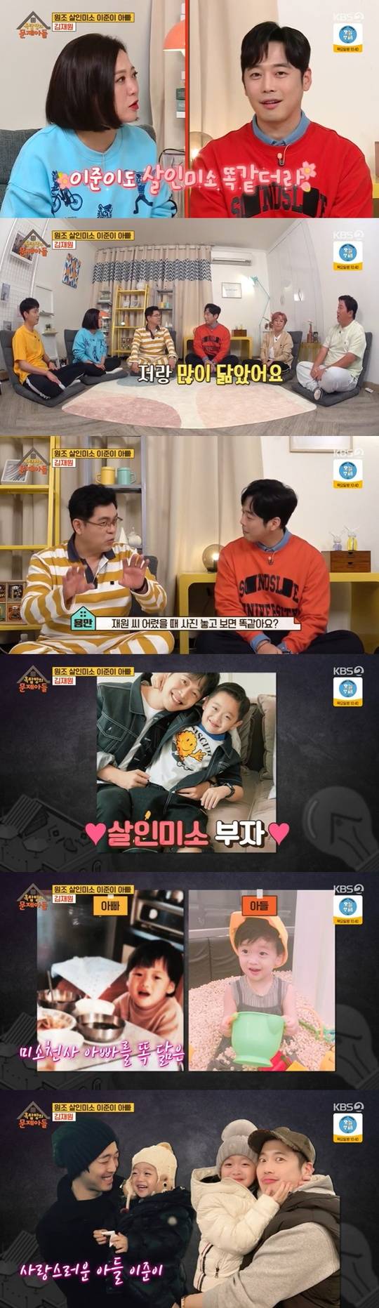 이날 방송에서 김숙은 김재원에게 “요즘은 이준이 아빠로 더 불리죠? 살인미소가 똑같더라”고 질문했고 김재원은 “닮았다”고 인정했다. 이어 김용만이 “어릴 때 사진이랑 보면?”이라고 묻자 김재원은 “많이 비슷하다”고 답했다. 그와 함께 김재원의 어린시절 사진이 공개돼 아들 김이준과 붕어빵 미모가 눈길을 끌었다.