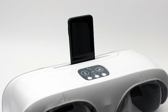 조작부 바로 위에는 가로로 길게 홈이 나 있는데, 여기에는 스마트폰이나 태블릿PC를 거치할 수 있어서 마사지를 하면서 영상을 감상하거나 게임을 즐길 수도 있다.