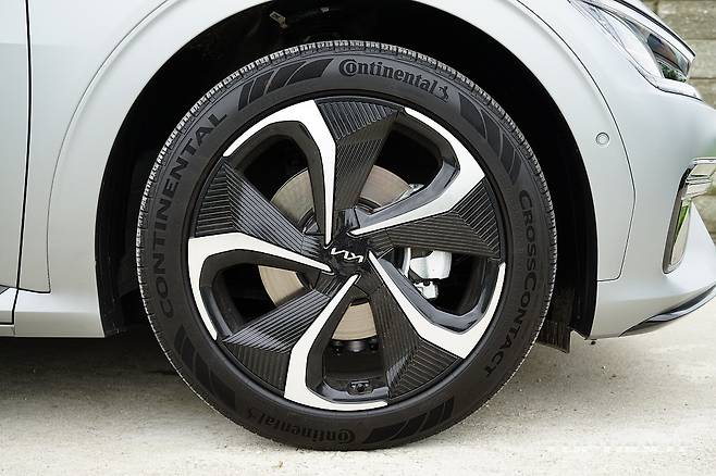 EV6 GT-라인의 255/45R20 타이어는 컨티넨탈 크로스콘택RX 제품으로 일상주행과 고속에서는 무난한 그립을 보이지만, 급 제동시 그립은 다소 부족한 모습이다. EV6의 성능을 충분히 끌어내기 위해서는 여름용 타이어가 좋겠지만, 주행가능거리 감소는 감당해야 한다.