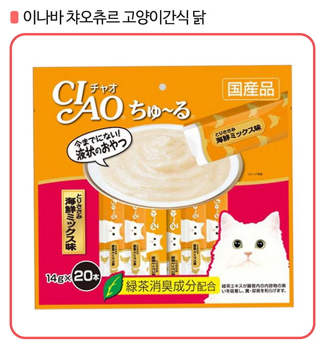 고양이 츄르하면 생각나는 대표 제품이에요. 사실 츄르 이름 자체도 이 제품의 이름에서 시작되었어요. 유명한 만큼 아주 좋은 기호성을 자랑합니다.