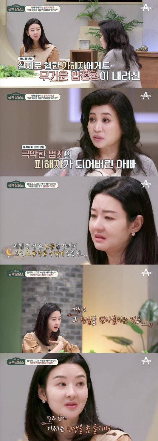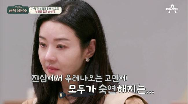 8일 오후 방송된 채널A '오은영의 금쪽상담소'에서는 5년 전 불의의 사고로 남편을 잃고, 홀로 7살 딸을 키우고 있는 송선미의 사연이 그려졌다.