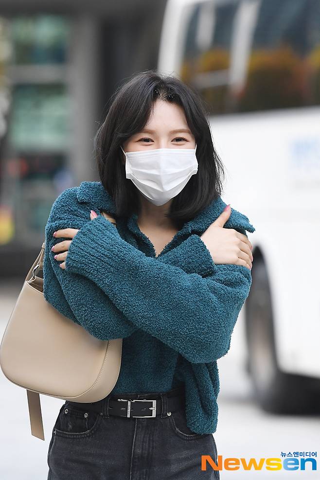 레드벨벳 멤버 웬디가 11월 1일 오후 서울 양천구 SBS목동에서 진행되는 SBS 파워FM '웬디의 영스트리트' 라디오 일정에 참석하기 위해 방송국으로 들어서고 있다.