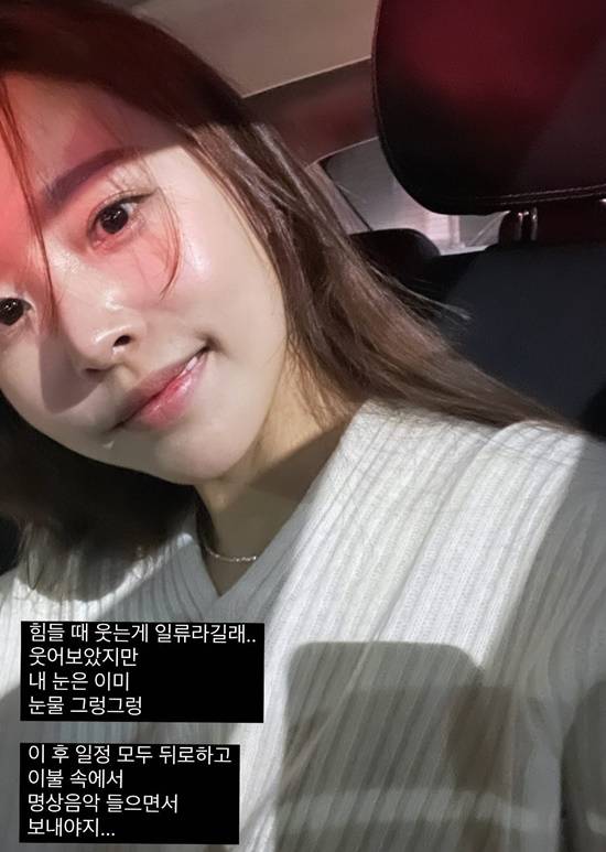 이솔이는 10일 자신의 인스타그램 스토리를 통해 "힘들 때 웃는 게 일류라길래 웃어보았지만 내 눈은 이미 눈물 그렁그렁"이라고 글을 남겼다.