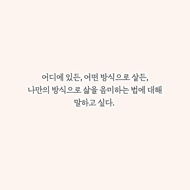 |드디어 나답게 살아가는 삶의 맛을 알게 되었다.