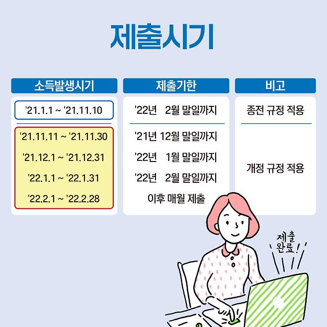 '21년 11월 11일 소득발생분부터 매월 제출로 바뀝니다.