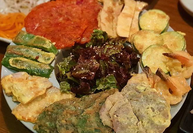 바삭함을 살려 부친 녹두 해물전, 여수 소호동 '밀터'