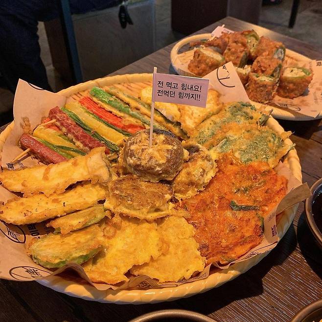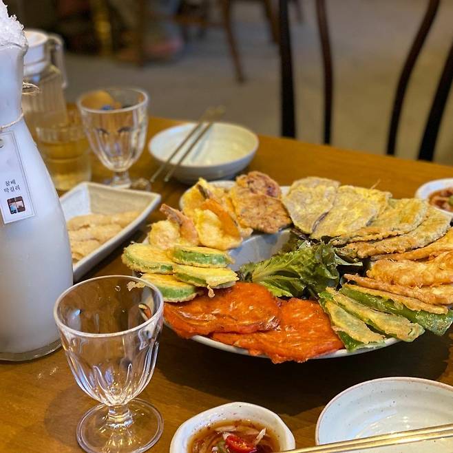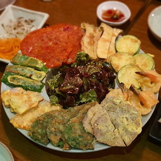 ▲후기(식신 김민디띠): 매장 인테리어가 다른 전집들과는 달리 깔끔하고 모던한 느낌~? 그래서 더 좋았어요. 꿀배 막걸리랑 모듬전 시켜서 먹었어요. 모듬전은 접시 위에 육전, 깻잎전, 새우전, 호박전 등등 동그랗게 둘러져 있는데 일단 비주얼부터 합격! 접시 가운데 상추 겉절이가 있어서 전이랑 같이 먹으면 느끼함을 잡아줘요. 전들이 따끈따끈하고 하나같이 다~ 맛있었습니다. 단골 될 것 같아요~