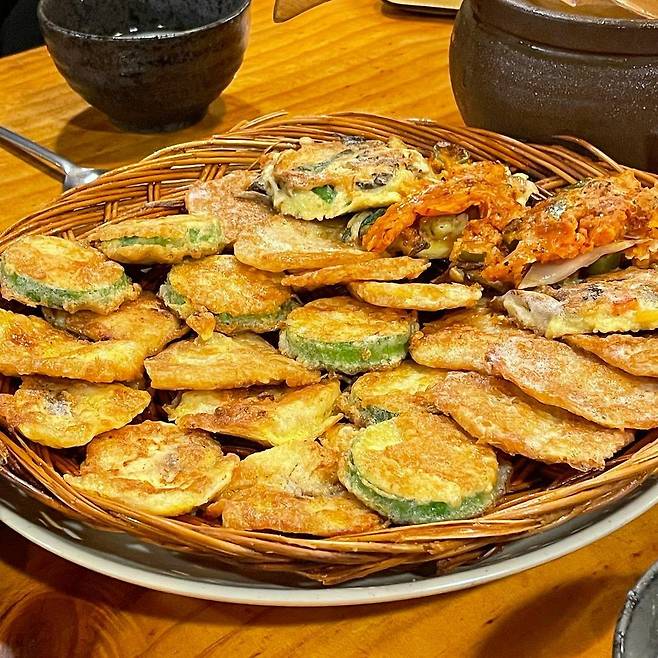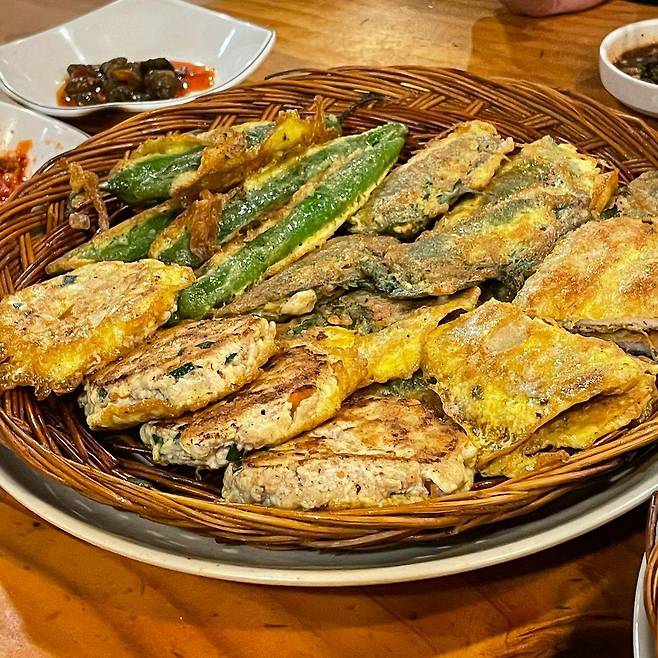 ▲후기(식신 사교의여왕): 청주 맛집으로 유명한 곳이에요~ 둥근 소쿠리에 나오는 모듬전과 작은 항아리에 나오는 막걸리는 찰떡궁합!! 모듬전을 시키면 1, 2, 3차로 나오는데요~ 1차는 김치전, 2차는 동그랑땡, 고추전, 깻잎전, 육전, 3차는 감자전, 동태전, 버섯전이 나와요. 세 번에 나눠서 나오니까 훨씬 따뜻하고 더 맛있는 기분이에요~! 양도 푸짐하고 맛도 좋아서 가성비 괜찮은 느낌!