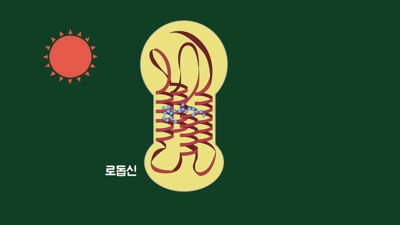 그런데 로돕신을 합성해놓고 어두운 곳에서 밝은 곳으로 이동하면 로돕신은 레티날과 옵신(opsin, 로돕신을 구성하는 막단백질)으로 다시 분해됩니다. 참고로 어두운 곳에서 갑자기 밝은 곳으로 이동했을 때 순간 눈앞이 새하얗게 보이는 이유가 로돕신이 순간적으로 많이 분해되기 때문입니다.