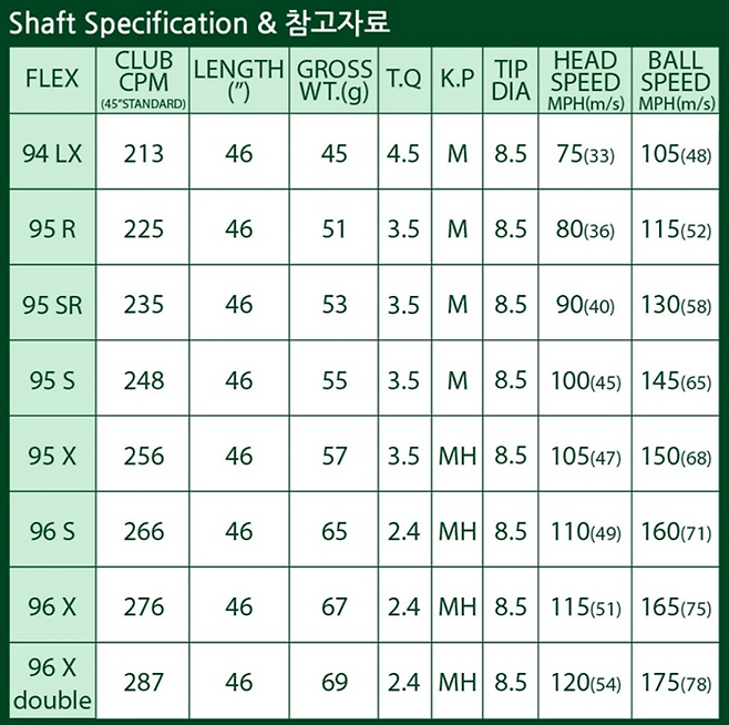 TANK에서는 자신의 스펙을 쉽게 찾을 수 있도록 스윙 스피드 볼 스피드에 맞게 레퍼런스 자료를 첨부하고 있습니다. 위 스펙표 참고해서 자신에게 꼭 맞는 스펙을 득템하시기 바랍니다.