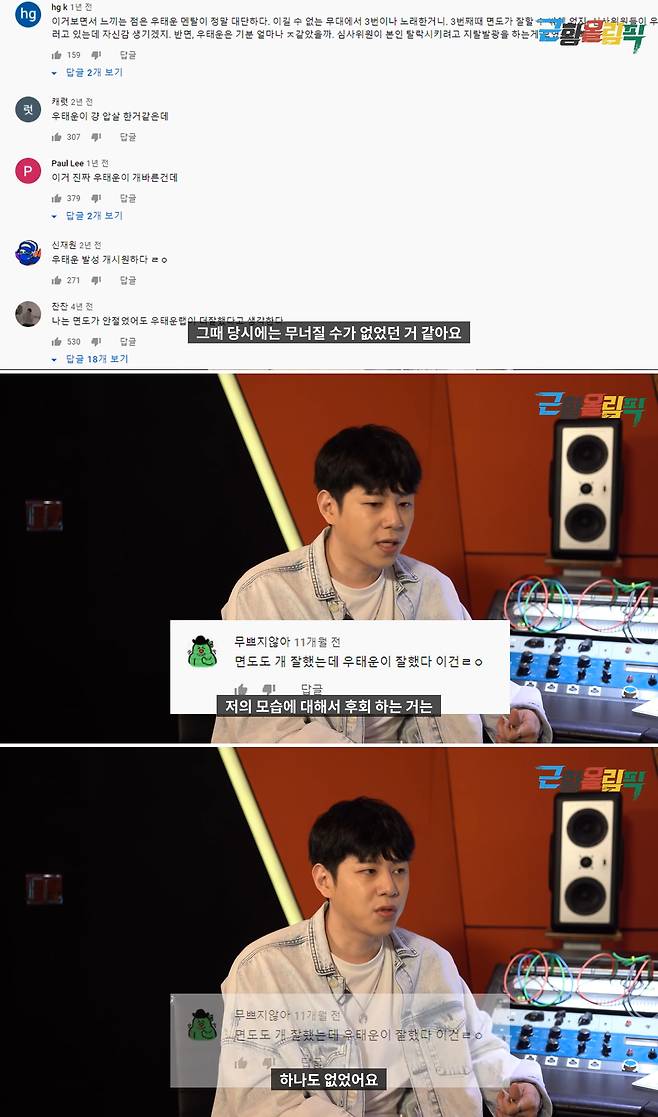 그때 당시에는 무너질 수가 없었던 것 같아요. 일어나서 랩을 바로 할 수 있을 정도로 연습을 했었고, 그때 당시에 저의 모습에 대해서 후회하는 거는 하나도 없었어요. 저를 좋게 봐주셨던 대중한테도 너무 감사했었어요.