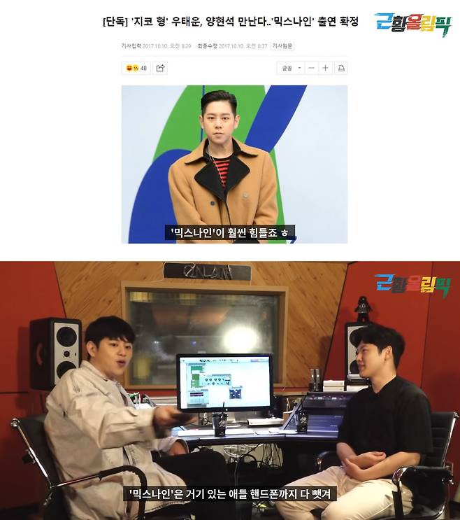 저도 그걸 보는데, 너무 가슴이 아팠어요. 제가 그러고 있는 게 미치겠더라고요. 제가 봐도 '왜 저러는 거지' 생각이 들었죠. 그때 당시에는 굳이 둘이 대화를 별로 안 했어요. 약간 지코는 제 자존심을 걱정한다기보다는 제가 알아서 깨달았을 거라고 생각했을 거예요.ㅎ