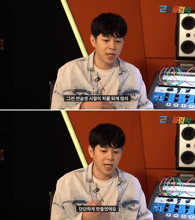 그 '삐리뽐 빼리뽐'은 영상으로 남아있는 것은 흑역사지만, 그때 지내왔던 그런 연습생 생활들은 저에게 있어서 굉장히 도움이 됐던 것 같아요. 왜냐면 1년에 딱 이틀 정도를 쉬는데 매일 아침 8시에 일어나서 연습이 끝나면 새벽 1~2시가 돼요. 이후에 부지런해지고 주말 없는 삶이 몸에 배었어요. 그런 연습생활들이 저를 단단하게 만들었어요.