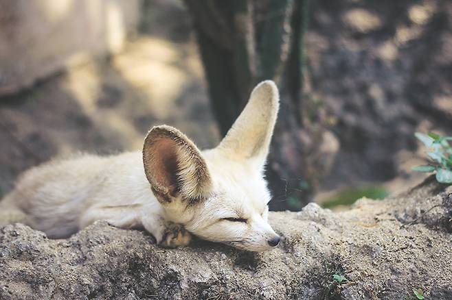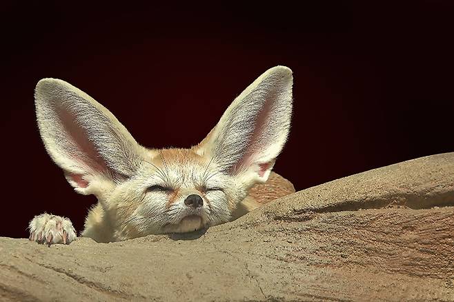 사막여우라고도 불리우는 페넥여우는 야행성 개과의 포유류로 암수로 쌍을 이루거나 가족 단위로 무리지어 생활합니다. 아프리카 북부 모래사막과 반사막에 굴을 파서 보금자리를 만들며 작은 척추동물, 곤충, 도마뱀, 식물 등을 먹는 잡식성을 가지고 있습니다. 몸길이 30~41cm, 꼬리길이 18~30cm, 높이 19~21cm, 귀의 길이는 10~15cm입니다.