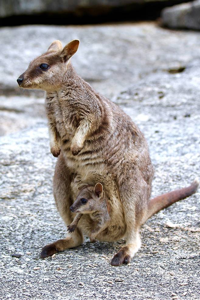 왈라비는 캥거루와 비슷한 외형을 가지고 있습니다. 큰 왈라비는 92~100cm, 작은 왈라비는 66~79cm까지 다양하며 약 10종류의 왈라비로 나누어집니다. 대체로 무리로 생활하며 풀잎이나 나무잎을 먹고 살아갑니다. 호주, 태즈메이니아섬, 뉴기니에서 발견됩니다.