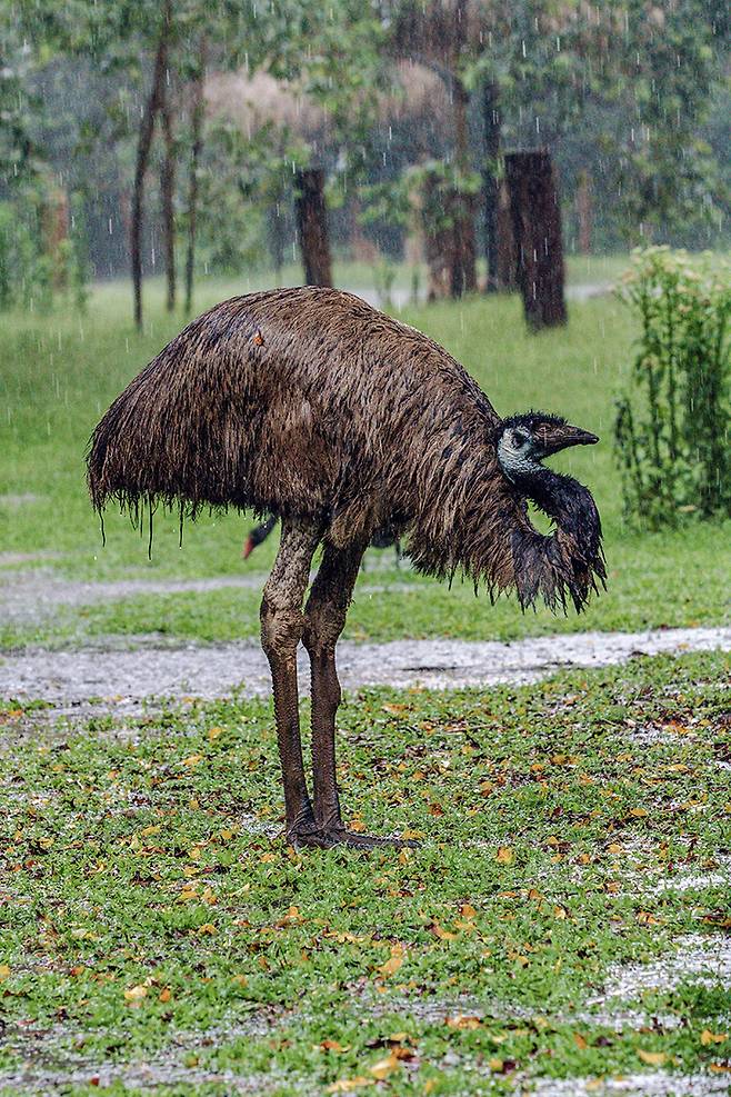 에뮤는 몸길이 1.8m, 몸무게 36~54kg로 호주의 대형 조류입니다. 잿빛이 도는 갈색으로 아주 거친 깃털을 가지고 있습니다. 주로 과일이나 나뭇잎, 풀뿌리, 씨앗, 곤충 등을 먹고 살아가며 시속 60km/h로 달릴 수 있습니다.