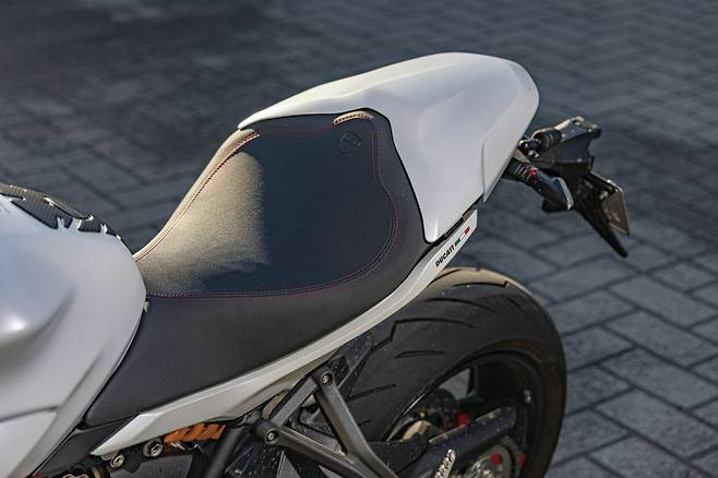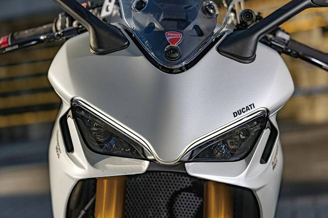 그럼 다시 2021년 슈퍼스포츠S로 돌아오자. 슈퍼스포츠 2세대 모델은 기존의 슈퍼스포츠의 구성을 거의 그대로 가져왔다. 눈에 띄는 차이점은 역시 디자인이다. 두카티의 슈퍼바이크가 파니갈레 V4로 진화한 만큼 그를 쏙 빼닮은 디자인으로 변경된 것이다. 기존의 슈퍼스포츠는 파니갈레로부터 온 디자인이지만 헤드라이트 아래쪽에 할로겐램프가 큼직하게 자리 잡아 날렵한 분위기를 확 망쳤었는데 이제는 LED헤드라이트로 변경되며 파니갈레 V4의 분위기가 더욱 진하게 난다. 차체 아래쪽으로 더 길게 내려온 페어링도 슈퍼바이크의 분위기를 더한다.