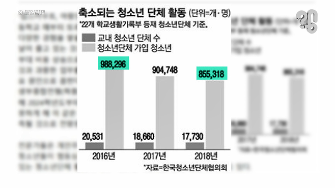 정리하자면 한때 대한민국 운동장을 점령했던 3대 조직이 지금도 활동하고 있는 건 맞는데 코로나 시대를 맞아 유튜브와 줌, 로블록스 등 가상공간으로 활동 무대를 옮겼다는 것. 그런데 꼭 코로나가 아니더라도청소년단체 가입 청소년 수는 2016년 98만8296명에서 2018년 85만5318명(학교생활기록부 등재 22개 단체 기준)으로 줄어드는 추세였다. 참고로 왱에서 최근 통계를 구하고자 했는데 한국청소년단체협의회에서 예전 같지 않은 건 사실이라며 밝히길 꺼려했다.