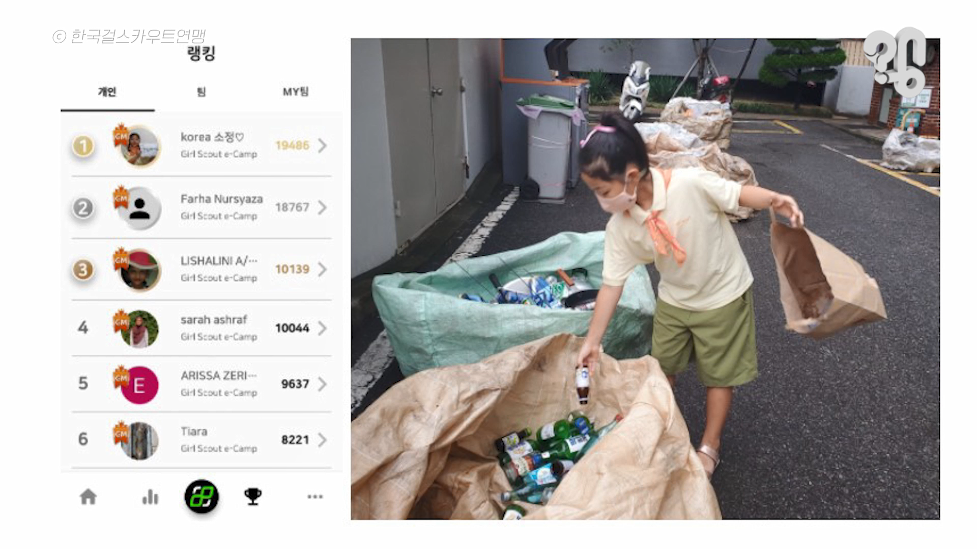 다음은 걸스카우트.걸스카우트도 핵심은 언택트다. 지난 8월 ‘걸스카우트 e-국제야영’ 대회가 열렸는데 춤 경연대회, 조깅을 하며 쓰레기를 줍는 ‘플로깅’ 같은 봉사활동 등 모든 활동이 비대면으로 이뤄졌다. 여성가족부 후원도 받고 홍보대사인 오마이걸이 공연도 하면서 만만찮은 규모를 보였는데 걸스카우트 관계자에 따르면 국제야영 대회에 비대면으로 참석한 학생 수는 30개국 8000여명이라고 한다.