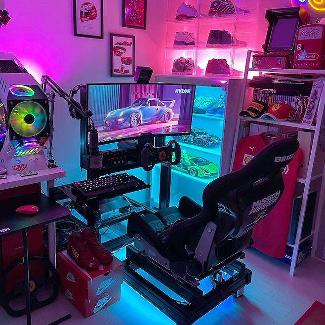 자! 이제 거실과 주방 소개는 여기까지! 지금부터 저희 가족 각자의 방으로 모시겠습니다! 먼저 레이싱 게임과 잡다한 취미가 있는 아빠 방(제 방)을 보시겠습니다.