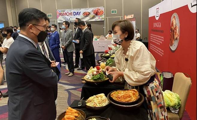 8월 23일 김치의 날 제정 축하 기념식에서 다양한 김치를 선보인 '김치 전도사' 사라 킴 씨로부터 미국 내 김치 및 한국 음식의 인기에 대해 들어보았다.