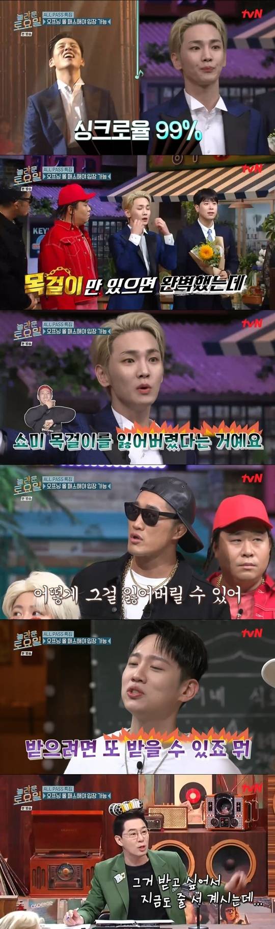 키는 "한해가 '쇼미더머니'에서 입은 옷이 바로 이런 느낌이다. '로비로 모여' 부를 때 이런 옷 입지 않았나. 여기에다가 '쇼미' 목걸이를 딱 걸어서 콘셉트를 제대로 하고 싶었는데 저 양반이 그 목걸이를 잃어버렸단다"고 폭로했다.