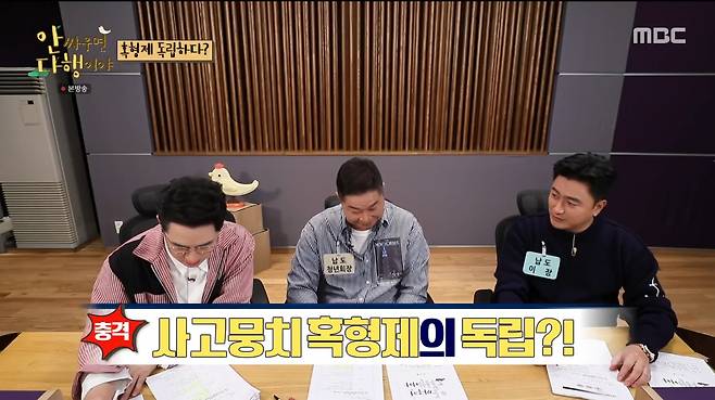 11일 오후 방송된 MBC '안싸우면 다행이야'에서는 '혹 형제' 허재와 김병현이 자급자족 독립 라이프에 도전했다. 빽토커로는 안정환과 현주엽이 나섰다.
