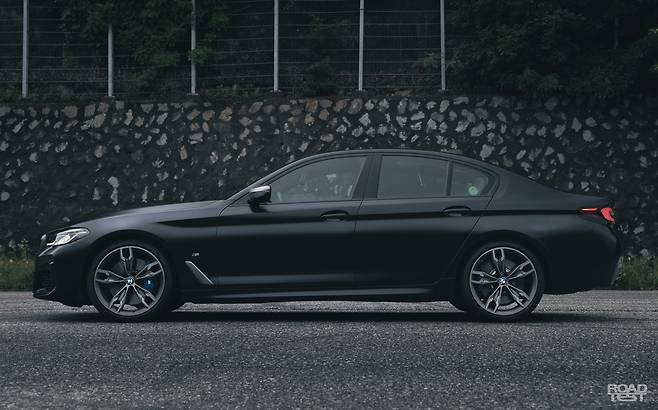 자동차에 크게 관심 없는 사람이라면 일반 5시리즈와 M550i의 차이를 구분하기 어렵다. 530마력은 외모에 거의 드러나지 않는다. 마세라티 같은 차들은 고성능 버전만 있으니 실루엣부터 뭔가 남다르지만, M550i는 190마력 기본 모델과 디자인을 공유하기 때문에 도로 위 존재감이 그리 강하지 않다. 요란한 컬러로 화장 할 수도 있으나 그런 건 M5에 맡겨두고 차분한 길을 택했다.
