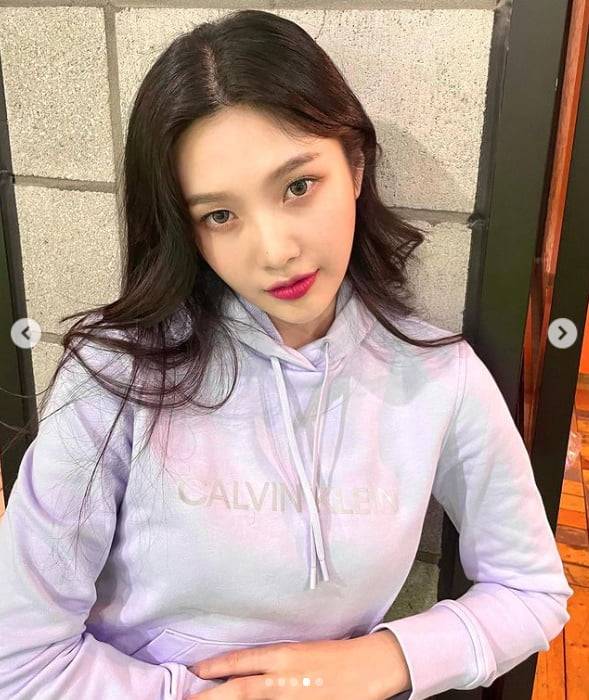 공개된 사진 속 조이는 연보라색 옷을 입고 상큼하면서 러블리한 미모를 뽐냈다.