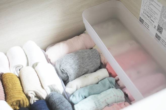 이 때 박스 안에 최대한 많은 옷을 정리하려면 세워서 수납하는 것이 좋으니 참고하세요 :)