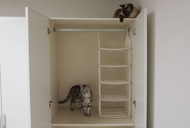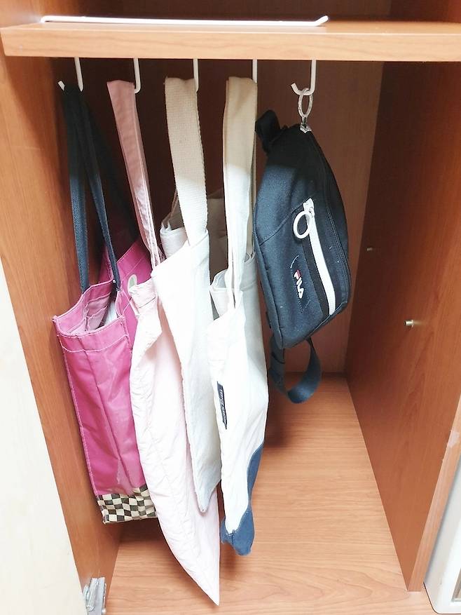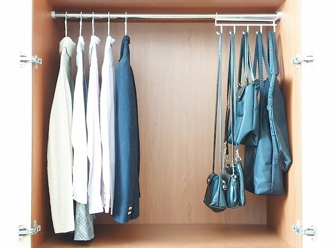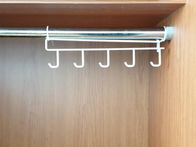 저는 독특하게 주방에서 사용하던 철제 걸이를 옷장에 사용하고 있어요.