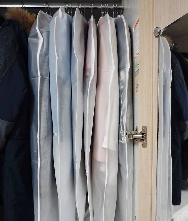 의류 커버 한 개에 두세벌씩 모아서 걸어두면 커버 씌우는 번거로움도 덜해요!
