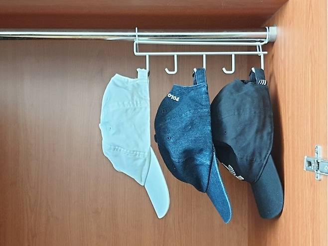 주방 걸이지만 모자걸이로 사용해보니 옷걸이나 S자 고리에 거는 것보다 공간 차지도 덜하고 꺼내서 사용하기도 편해서 마음에 쏙 드네요.