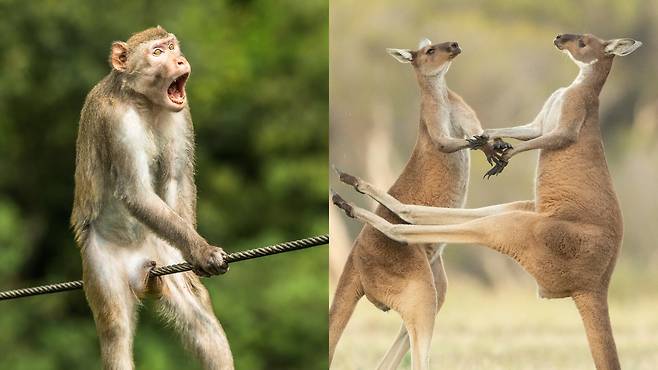 사진은 ‘2021 코미디 야생 동물 사진상’ 후보작이다. 사진작가 폴 조인슨 힉스와 톰 술람은 2015년에 환경의 소중함을 상기하려고 이 시상식을 시작했다. 힉스는 “올해 전 세계에 있는 사진작가들로부터 7000장이 넘는 사진을 접수받았다”며 “최종 수상자는 오는 10월 22일에 발표할 예정”이라고 밝혔다.