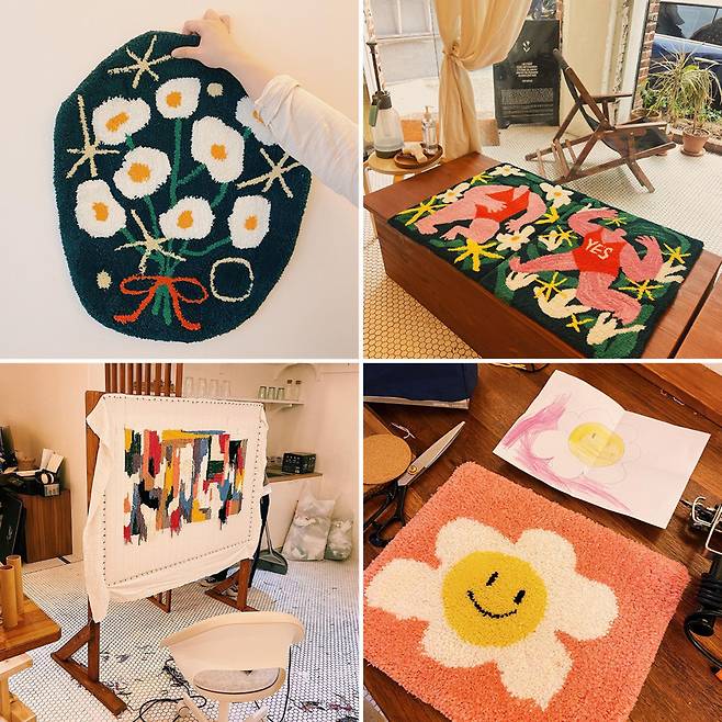 부드럽고 따뜻한데 예쁘고 유일한 소품, 터프팅 러그를 만들 수 있는 원데이클래스도 있다. 총처럼 생긴 머신에 실을 끼워 쏘아 만드는 터프팅 러그는 방법은 천위에 실을 심는 개념이다. 특별한 집들이 선물이 필요하다면, 세상에 하나밖에 없는 직접 만든 러그를 준비해보는 것도 좋겠다.