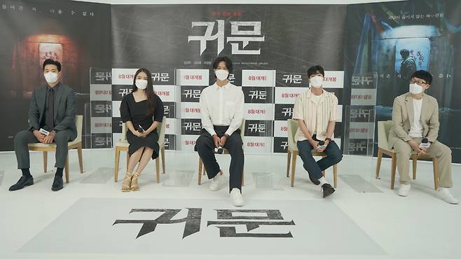 1990년 집단 살인 사건이 발생한 이후 폐쇄된 귀사리 수련원에 무당의 피가 흐르는 심령연구소 소장과 호기심 많은 대학생이 발을 들이며 벌어지는 이야기를 그린 공포 영화 '귀문'(심덕근 감독, 고스트픽처스 제작). 19일 오전 유튜브 라이브 생중계 채널에서 진행된 '귀문' 제작보고회를 통해 베일을 벗었다. 이날 제작보고회에는 심령연구소 소장 서도진 역의 김강우, 호러 영상 공모전 리더 홍혜영 역의 김소혜, 호러 영상 공모전 리포터 강태훈 역의 이정형, 호러 영상 공모전 촬영을 맡은 이원재 역의 홍진기, 그리고 심덕근 감독과 오윤동 CP가 참석했다.