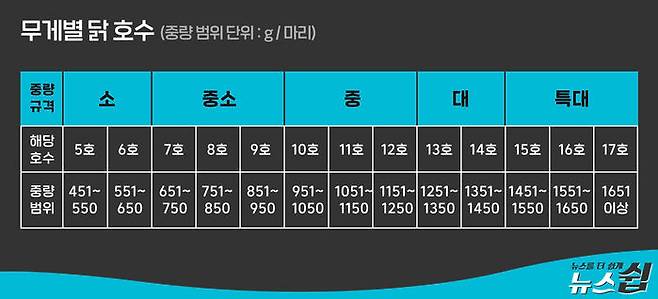 현재 우리나라 육계의 사육일수는 평균 30~33일 정도에 맞춰져 있다. 같은 연령 병아리가 한꺼번에 계사에 들어가 닭으로 커지면 한꺼번에 나오는 올인 올 아웃(All in All out)시스템이다. 연령이 다른 병아리들이 좁은 계사 안에 같이 있으면 먼저 태어난 (그래서 더 큰) 병아리들이 먹이 쟁탈전에서 유리해 작은 병아리 폐사율이 높아지기 때문이다. 한번에 들어간 병아리들은 한 달 뒤 1.5kg 닭이 되어 한꺼번에 도계장으로 간다. 계사는 1개월 간의 휴지기를 거쳐 다시 병아리를 받는다. 보통 60일이 조금 넘는 기간이 한 주기다. 한국가금학회지에 실린 '육계의 사육환경에 따른 출하성적 분석'(2019년) 논문에 따르면 1년 평균 출하 횟수는 5.7회다. 만약 2.5kg 이상의 닭으로 키우려면 45일을 키워야 하는데, 이런 경우 출하 횟수가 줄어 양계 농가 수익이 줄어들게 된다. 당연히 병아리와 사료를 제공하는 도계 업체의 수익도 줄게 된다.
