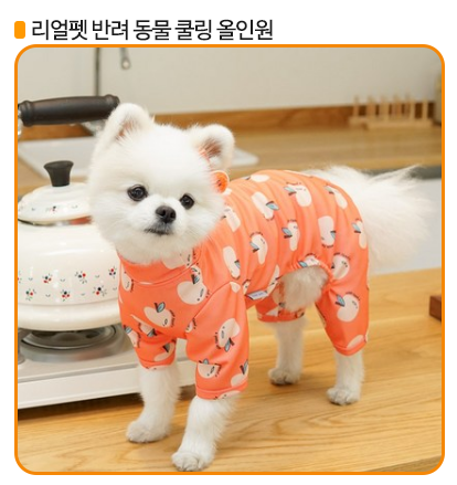 통풍이 잘 되고 시원한 원단으로 되어있는 올인원으로, 여름에 입히기 좋아요. 여름 산책 시 유용하게 사용할 수 있습니다. 무게도 34g 정도로 아주 가벼운 편이에요.