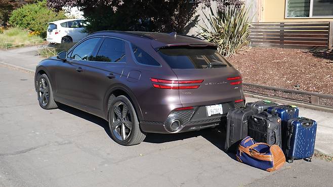GV70의 트렁크에 여러 개의 캐리어를 싣기 위해서는 창의적인 테트리스가 필요했다. 예를 들어 캐리어 하나를 C필러와 D필러 사이의 홈에 옆으로 밀어 넣어 바닥에 최대한 많은 캐리어를 실었으며, 캐리어 하나는 다른 캐리어 위에 올렸다. 그 결과 모든 가방이 들어가고도 약간의 공간이 남았다. 더 이상 여행용 가방을 실을 수 없었지만, 뒷좌석을 최대한 뒤로 미는 것도 가능했다.