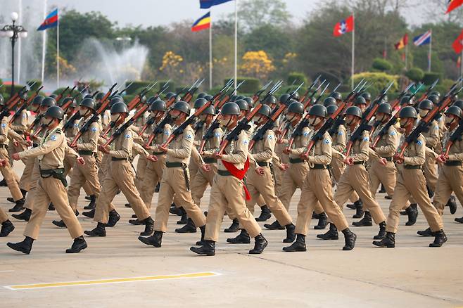 | ▲ 지난 3월 27일 제76회 국군의 날을 맞아 미얀마 군인들이 행진하고 있다. |