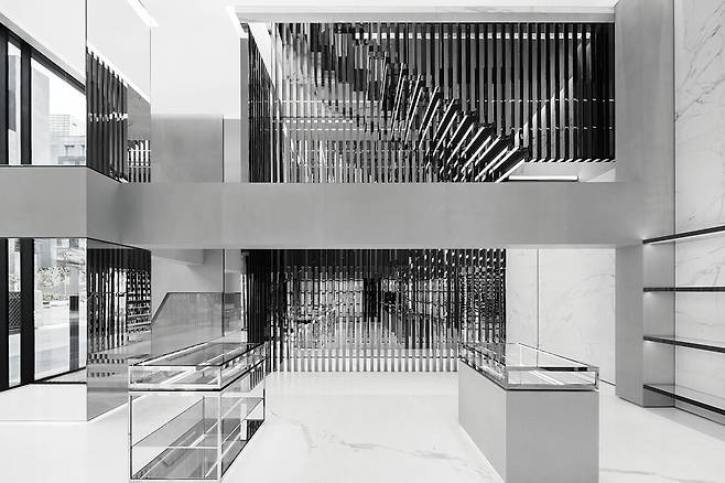 세계적 건축가 장 누벨이 설계한 돌체앤가바나 서울 스토어는 언뜻 미래에서 온 거대한 엘리베이터를 보는 듯하다. 검은 화강암 기둥 4개가 투명한 유리 실린더를 닮은 중앙 건물을 감싸는 구조로, 현대식 성(城)같은 장엄한 분위기에 사람들 누구나 시선을 돌려 호기심을 보인다. 내부의 블랙 마르키나 마블 모자이크 바닥은 ‘빛의 마술사’라 불리는 장 누벨의 손길을 실감케 한다. 각 층을 연결하는 나선형 계단이 걸음마다 황홀한 장면을 눈앞에 펼쳐 보이고, 조명 아래 돌체앤가바나의 컬렉션 피스는 더욱 눈부시게 빛난다. 안쪽에 자리한 프라이빗 드레스 룸, 돌체앤가바나 사토리아의 맞춤복 제작 서비스, 맨 꼭대기 층 바로 위 테라스 공간 등 이곳에서는 미지의 세계 풍경을 직접 마주하게 된다. 문의 02-3442-6888