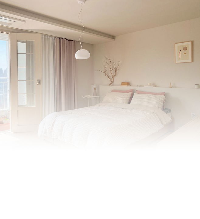 집을 보러 왔을 때, 아주 잠깐이었지만 해가 드는 방향과 빛의 양을 보고 백색보다는 살짝 톤 다운된 벽지 색을 사용하면 버터 빛의 따뜻한 공간을 만들 수 있을 것 같단 생각이 들었어요.
