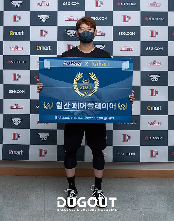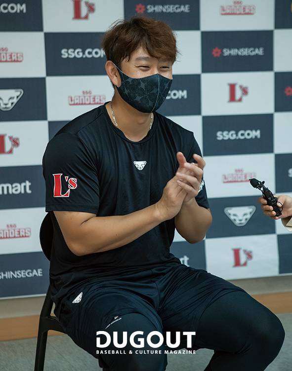 제 인터뷰도 잘 봐주시고 요즘같이 힘든 상황 속에서도 항상 응원해주시는 팬분들께 진심으로 감사드립니다. 지금 성적은 조금 안 좋지만, 열심히 극복해서 팀이 이기는 데 많은 도움이 되도록 노력하겠습니다. 끝까지 응원해주시면 SSG가 가을야구를 할 수 있게끔 최선을 다하겠습니다. 파이팅! 감사합니다.