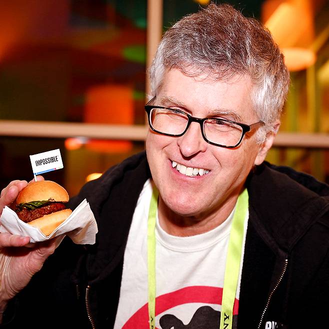 임파서블 푸드는 2011년 미국의 스탠퍼드대학교 출신 생화학자 패트릭 브라운이 만든 회사입니다. 뉴욕에서 줄을 서고 버거를 사는 진풍경을 만들어낸 '임파서블 버거'는 한인 셰프인 데이비드 장과 함께 만든 100% 식물성 버거예요. 버거 하나로 사업성을 인정받아 빌 게이츠와 페이스북 공동 창업자인 더스틴 모스코 비츠 등에게 1억 달러가 넘는 투자금을 유치 받고, 구글의 인수 제안을 거절하며 화제가 되었죠.