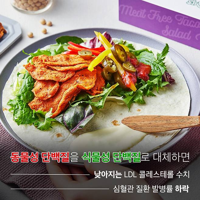 그럼 과연 자연식품이 아닌 대체육을 먹는 것만으로도 식물성 단백질의 건강한 효능을 얻을 수 있을까요? 놀랍게도 콜레스테롤 저하 효과 측면에서 효과적이라고 밝혀졌습니다. 대부분의 대체육은 콩에서 추출한 분리대두단백으로 만들어진 가공식품입니다. 연구자들은 콜레스테롤 수치를 내리는 부분에서 분리대두단백질과 자연식품인 콩의 효능 사이에서 큰 차이를 발견하지 못했다고 결론을 내렸죠.