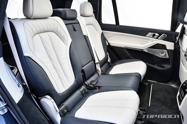 기존 X7 40i M 스포츠는 6인승으로만 운영됐다. 7인승 모델의 시트 배열은 2+3+2다. X7 40i M 스포츠 7인승의 BMW 메리노가죽 시트는 아이보리 화이트/블랙, 블랙, 커피/블랙 컬러 중 선택할 수 있다. 인디비주얼 가죽 대시보드와 파인 우드 블랙 인테리어 트림이 기본이다.