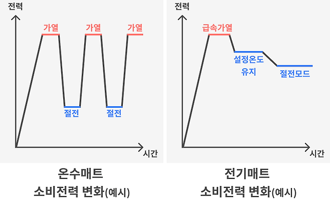 전기매트와 온수매트는 발열 방식부터 다릅니다.