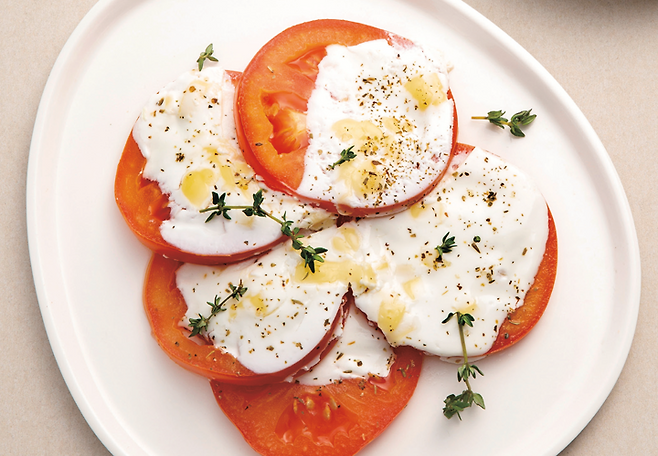 Tip. 토마토는 너무 얇지 않게 썰어야 더 맛있어요.