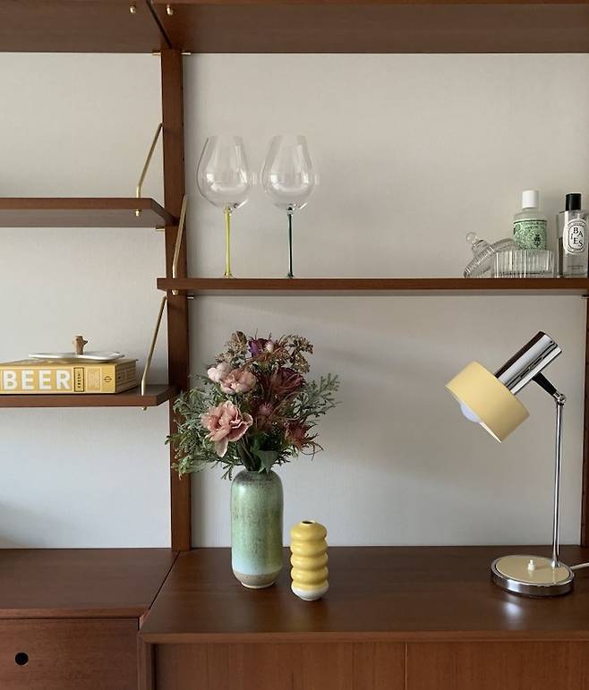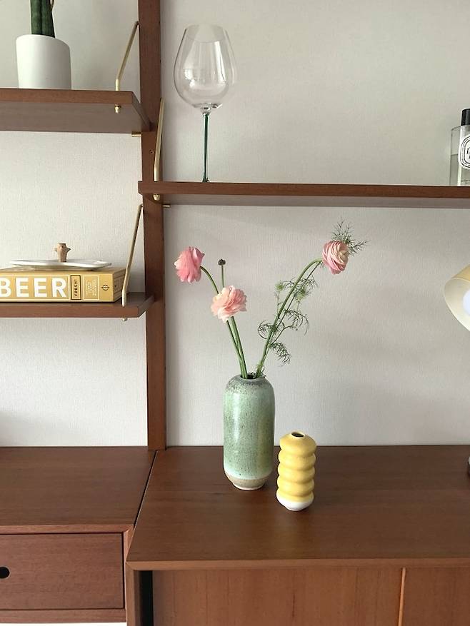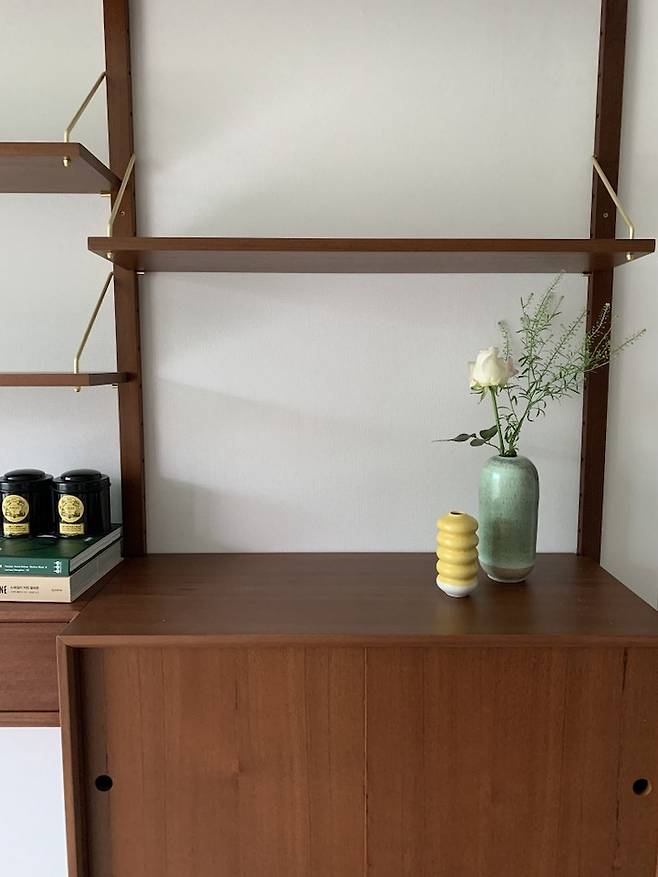 이 시스템 역시 위에 어떤 오브제들을 두느냐에 따라서 계절 별로, 기분에 따라 다른 느낌을 연출 할 수 있어서 지루함을 많이 느끼는 저 같은 사람들에게는 좋은 가구가 되어 줍니다. 개인적으로 사람 빼고는 뭐든 빨리 지겨움을 느끼는 타입이거든요.