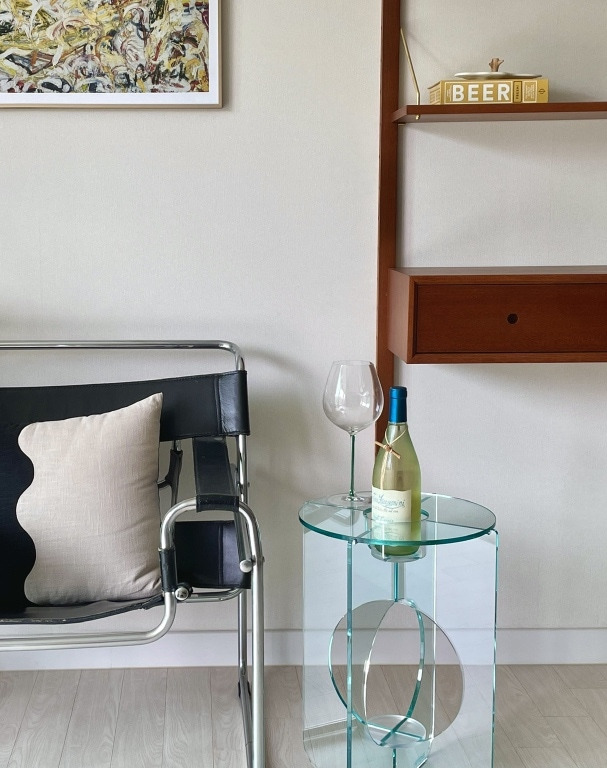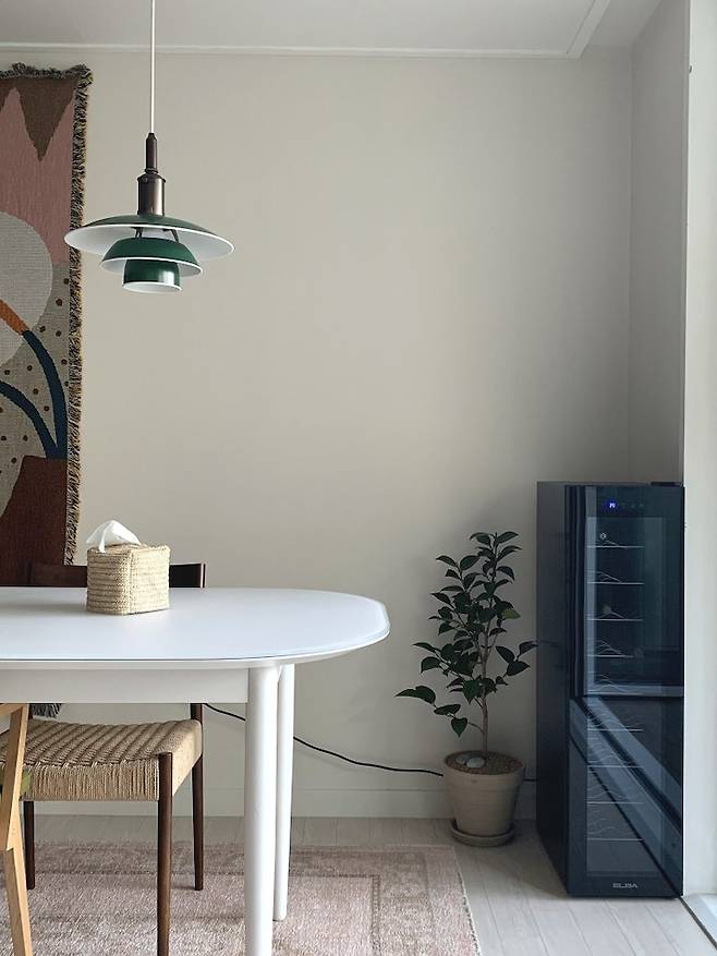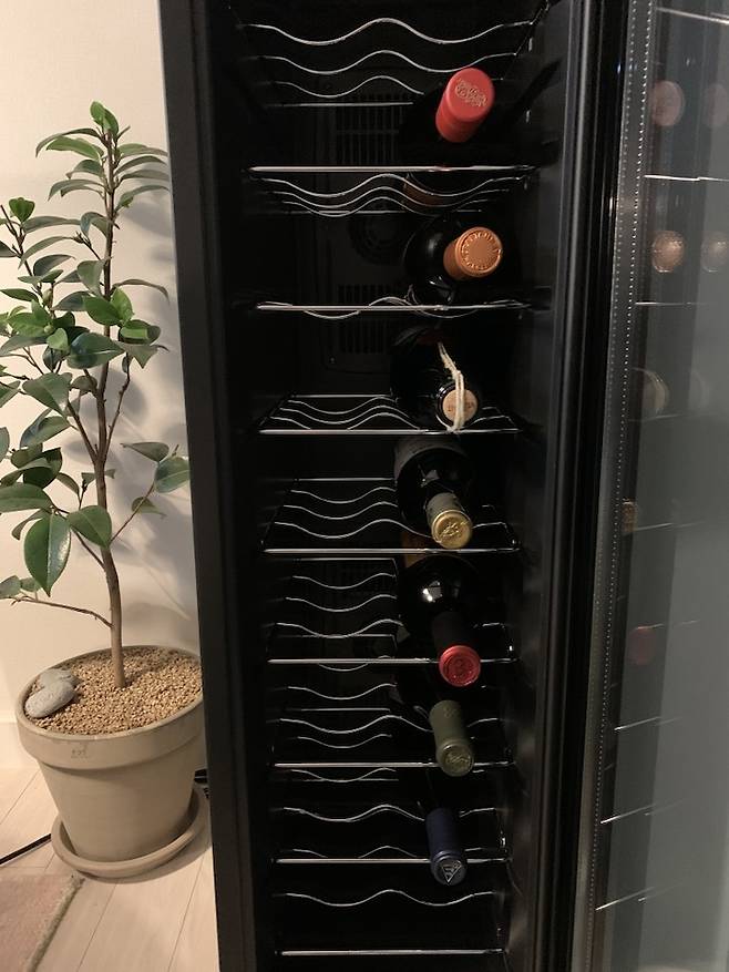 저희는 티와 와인을 좋아합니다. 와인 같은 경우에는 좁은 집이지만, 거실 공간 한 켠에 와인 냉장고를 두면 어떨까 해서 찾아보았는데요. 20평 대에도 놓을만한 가성비 좋고 작은 냉장고가 있어서 거실 구석 공간을 활용했습니다.